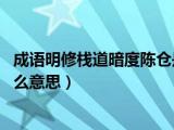 关于成语明修栈道暗度陈仓是什么意思,明修栈道 暗度陈仓是什么意思这个很多人还不知道,今天菲菲来为大家解答以上的问题,现在让我们一起 浏览全文>>