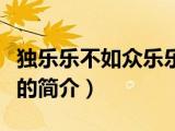 夏弥来为大家解答以下的问题,独乐乐不如众乐乐,说一说独乐乐不如众乐乐的简介,现在让我们一起来看看吧!1、独乐乐不如众乐乐,意思是自 浏览全文>>