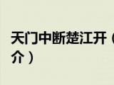 【天门中断楚江开】“天门中断楚江开”出自唐代诗人李白的《望天门山》一诗,全诗为:> 天门中断楚江开,碧水东流至此回。> 两岸青山相对...浏览全文>>