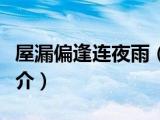 夏弥来为大家解答以下的问题,屋漏偏逢连夜雨,说一说屋漏偏逢连夜雨的简介,现在让我们一起来看看吧!1、屋漏偏逢连夜雨,汉词词汇,拼音 浏览全文>>