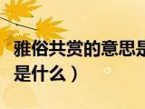 【雅俗共赏的意思是什么】“雅俗共赏”是一个常见的汉语成语,常用于形容某种艺术作品、文化产品或表现形式既符合高雅的审美标准,又能够被...浏览全文>>