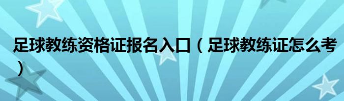 大家好,小乐来为大家解答以下的问题,足球教练资格证报名入口,足球教练证怎么考很多人还不知道,现在让我们一起来看看吧!