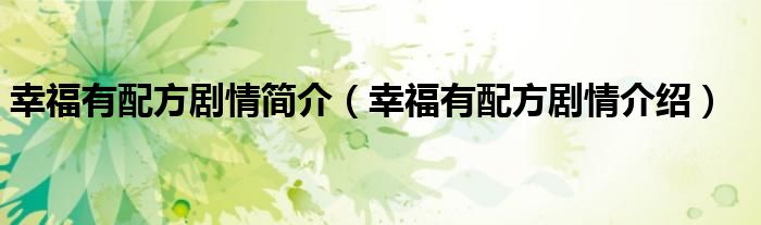 幸福有配方剧情简介(幸福有配方剧情介绍)