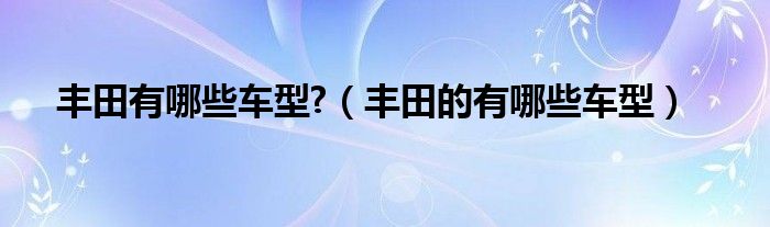 大家好,小乐来为大家解答以下的问题,丰田有哪些车型?,丰田的有哪些车型很多人还不知道,现在让我们一起来看看吧!