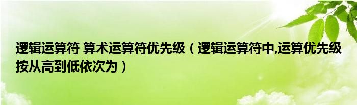 逻辑运算符 算术运算符优先级(逻辑运算符中,运算优先级按从高到低依次为)
