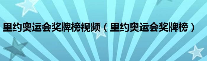 里约奥运会奖牌榜视频(里约奥运会奖牌榜)