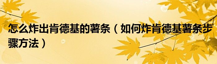 大家好,小乐来为大家解答以下的问题,怎么炸出肯德基的薯条,如何炸肯德基薯条步骤方法很多人还不知道,现在让我们一起来看看吧!