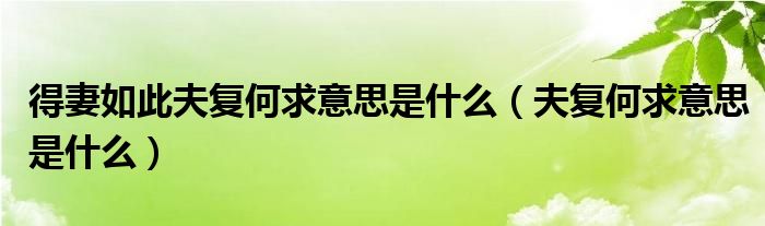 得妻如此夫复何求意思是什么(夫复何求意思是什么)