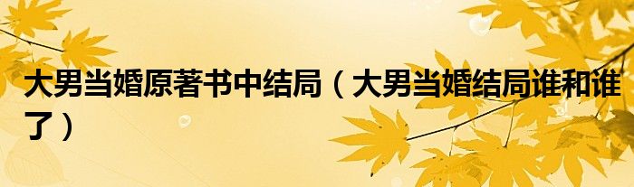 大家好,小乐来为大家解答以下的问题,大男当婚原著书中结局,大男当婚结局谁和谁了很多人还不知道,现在让我们一起来看看吧!