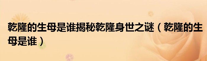 乾隆的生母是谁揭秘乾隆身世之谜(乾隆的生母是谁)