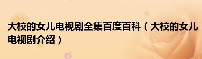 大家好,小乐来为大家解答以下的问题,大校的女儿电视剧全集百度百科,大校的女儿电视剧介绍很多人还不知道,现在让我们一起来看看吧!