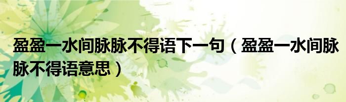 盈盈一水间脉脉不得语下一句(盈盈一水间脉脉不得语意思)