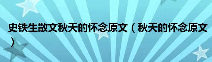 史铁生散文秋天的怀念原文(秋天的怀念原文)