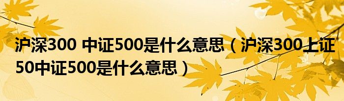 沪深300 中证500是什么意思(沪深300上证50中证500是什么意思)
